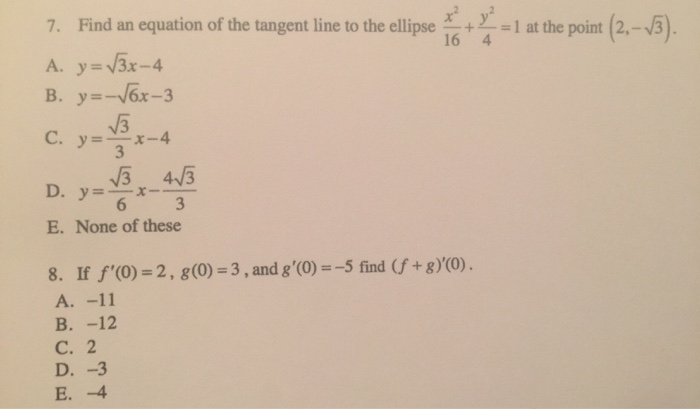 Find also the coordinates of the points of contact of the tangents which are inclined at 6 0 o to the axis of x. Find the equation efthe line tangent to the ellipse x2 2y2 36 at the point 24. With these formulas and definitions in mind you can find the equation of a tangent line.